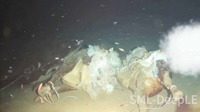 The large bovine carcass lowered into the South China Sea off Hainan (Picture:Ocean-Land-Atmosphere Research)