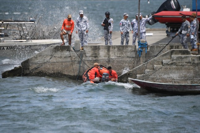 Philippine coast guard personnel preparing to sail to the search site this morning (Picture: Ted ALJIBE/AFP)