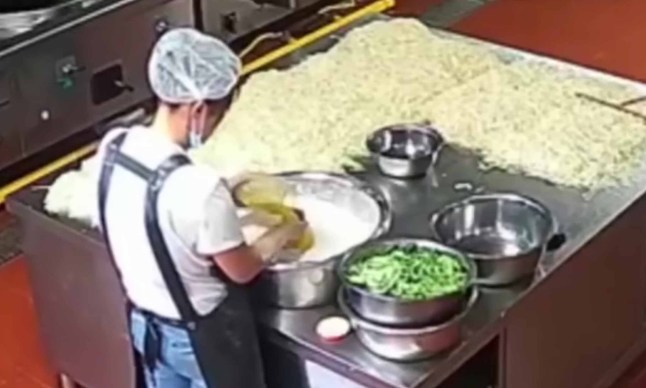The cook was caught by a surveillance camera in a kitchen in the northern Gansu province adding the colorant to a meal.