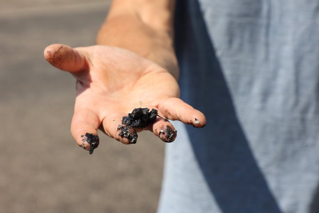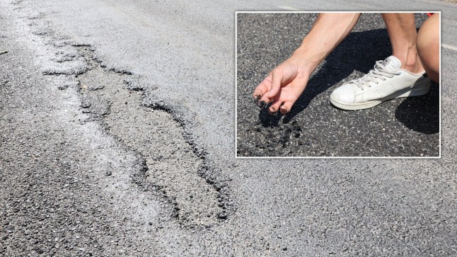 The tarmac stuck to hands and feet like putty (Picture: SWNS)