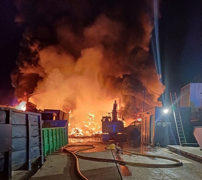 A warehouse in the scrap yard was alight,as well as three diggers and numerous vehicle.