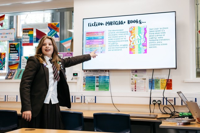 Aoife runs the school’s Pride Group,which she hopes will be a ‘safe place’ for queer young people (Picture: Just Like Us)
