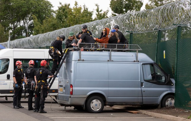 Photos shared by the activist group ‘Shut Down Leonardo’ showed the van sticking partially out of the fence.