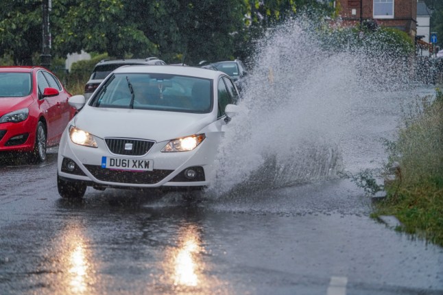 A motorist driving on a waterlogged road in Wimbledon over the weekend (Picture: Amer Ghazzal/Shutterstock)