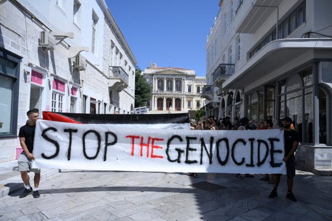 A statement from the protesters criticised Greece’s close relationship with Israel,saying: ‘As residents of Syros but more so as human beings,we are taking action that we hope will contribute to stopping this destruction from the genocidal war that is taking place in our neighbourhood.