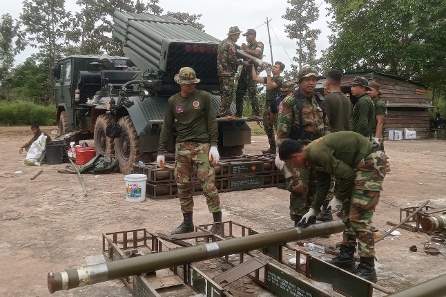 Cambodian soldiers reload the BM-21 multiple rocket launcher in Preah Vihear province on July 24,2025 (Picture: AFP)The day before,its neighbour also withdrew its ambassador and expelled the top Cambodian diplomat in protest after five Thai soldiers who were wounded in a land mine blast,one of whom lost part of a leg.Thailand has since shut all its border points with its neighbour.