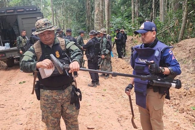 Thai soldiers inspect a border area onJuly 20,2025,in Ubon Ratchathani province,where the Royal Thai Army said two anti-personnel landmines were found (Picture: AP)United News - unews.co.za