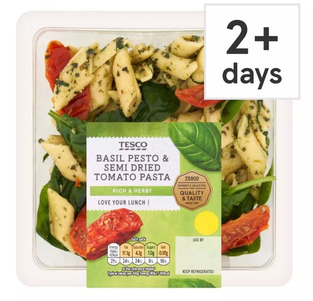It has also recalled its Basil Pest & Semi Dried Tomato Pasta with a best before date of July 24 (Picture: Tesco)