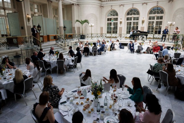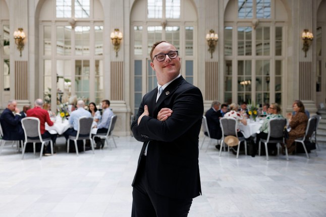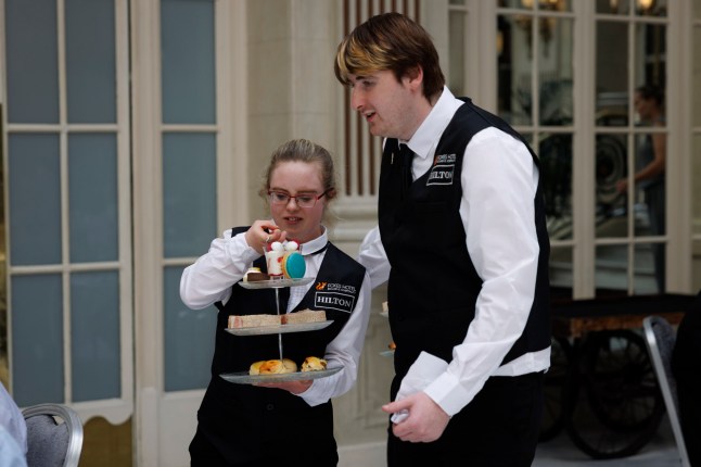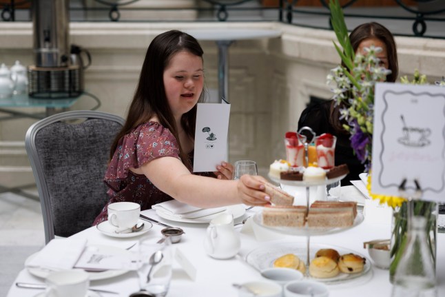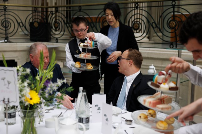 Yesterday,guests were served a menu of freshly cut sandwiches and warm scones by servers like Sam Innes,who has Down’s Syndrome.