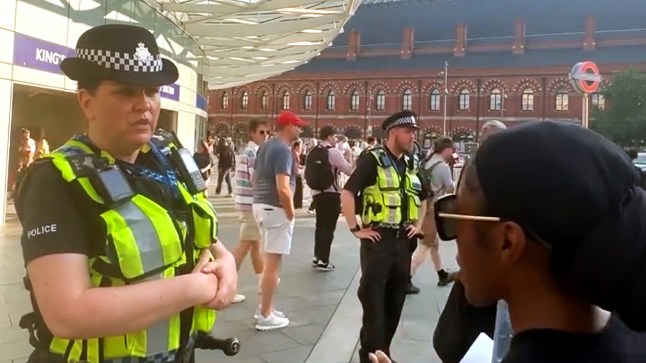 A British Transport Police spokesperson told Metro: ‘We are aware of a video posted on social media showing an interaction involving an officer outside Kings Cross railway station.