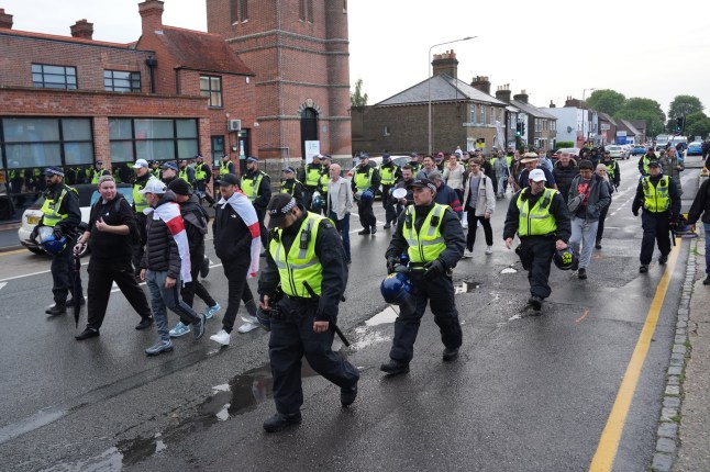 Officers stationed outside the hotel in Epping,Essex (Picture: PA)Robinson (real name Stephen Yaxley-Lennon) – who wrote last week that he would bring ‘thousands’ with him to the Essex town – has threatened to attend the rally as well.However he has more recently played down the prospect of him coming to the protest.Residents have reported feeling ‘trapped’ and unable to leave their homes during demonstrations.Hotel residents and staff have been advised to remain indoors after 5pm as some have experienced verbal and physical harassment.It comes amid reports of an ‘escalation of violence’ during previous protests in the area on July 13,17,20 and 24,all involving hundreds of people.This included missiles being thrown,vehicles vandalised,officers assaulted and damage to the hotel including graffiti and smashed windows.Yesterday,two further people were charged following violent disorder in the area.Lee Gower,43,was detained after beating an emergency worker from an incident on July 17 and has been remanded in custody to appear at Colchester Magistrates’ Court on Saturday July 26.