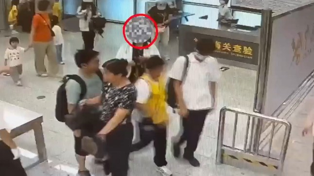 They noticed a woman trying to rush through Futian Port on the border between mainland China and Hong Kong appearing all flustered.