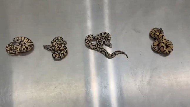 It turned out that their instincts were correct because as soon as they looked inside the woman’s bra something was found… four endangered ball pythons.