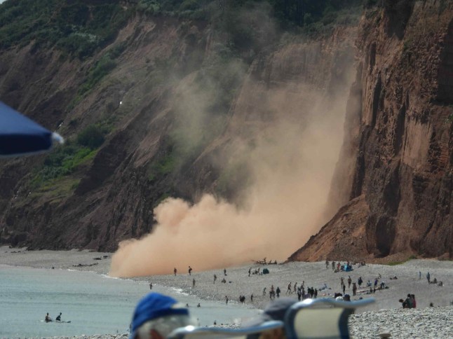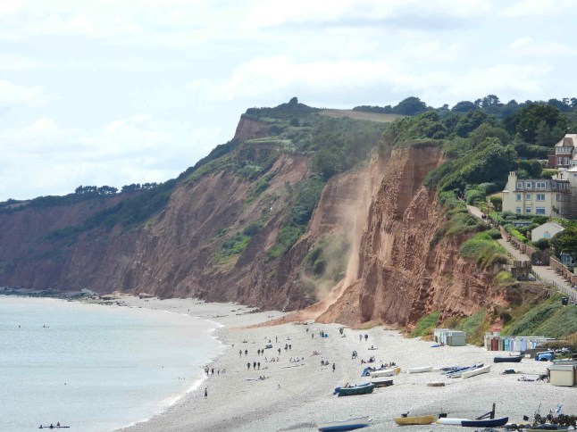 Thousands of tons of rock crashed onto the sand at Budleigh Salterton,Devon on Saturday.