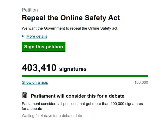 Well,kind of. A petition calling on the government to repeal the Online Safety Act has garnered thousands of signatures in only days.