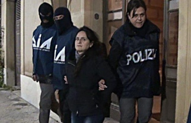 Matteo Messina Denaro’s sister Patrizia Messina Denaro being arrested by Special Police at her home in Castelvetrano (Picture: Franco Lannino/EPA/Shutterstock)