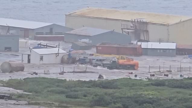 Buildings being washed away in Kamchatka