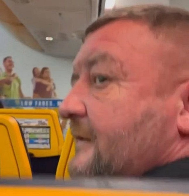 Graham even asked the cabin crew for the pilot’s hotspot – desperate times (Picture: Jam Press/@Benidorm_Grumet1)
