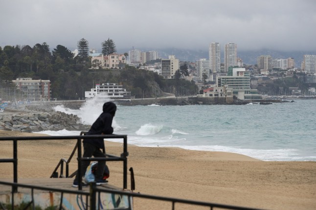 A person looking on at crashing waves in Vina del Mar,Chile (Picture: REUTERS)
