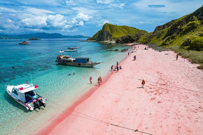 Pink Beach in Indonesia is famous for its distinctive hue (Picture: Shutterstock / Daniel Rolph)