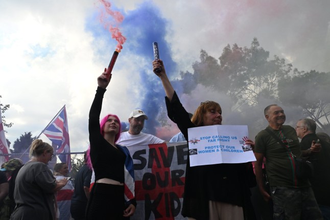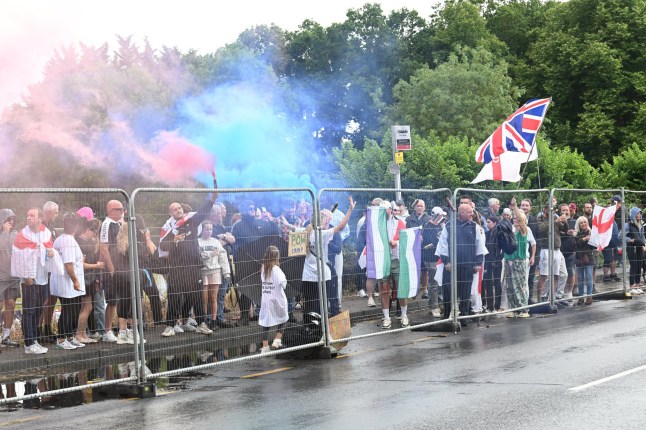 Other protests outside migrant hotels have sprung up across the capital,with beer cans thrown at another migrant hotel in Stanwell near Heathrow Airport.