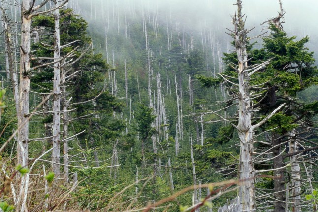 A forest on Mt. Mitchell in western North Carolina worn down by acid rain (Picture: Getty Images)