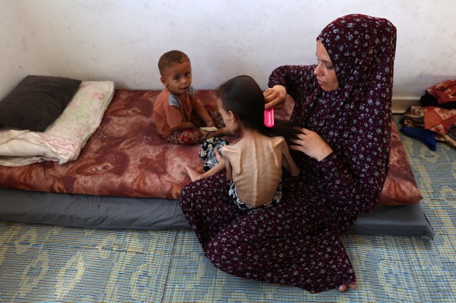 The malnourished Palestinian girl above is nine years old (Picture: Getty)