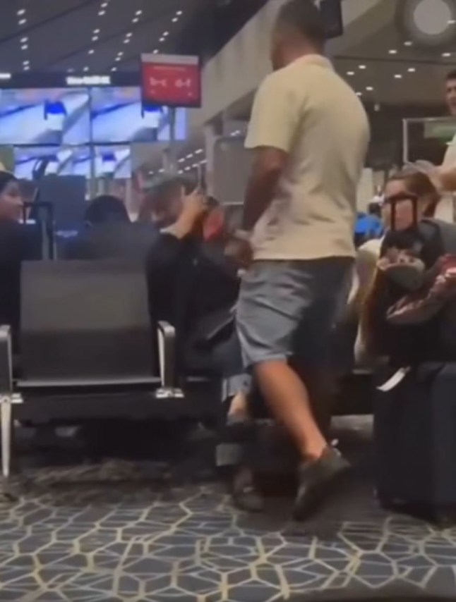 Other passengers sat near Gate 9 intervened as the argument escalated out of control.