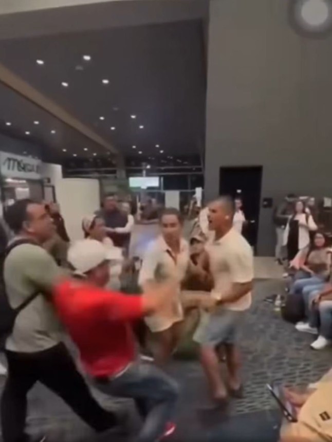 The brawl erupted in the departure lounge atEl Dorado International Airport in Bogotá,Colombia (Picture: Facebook)
