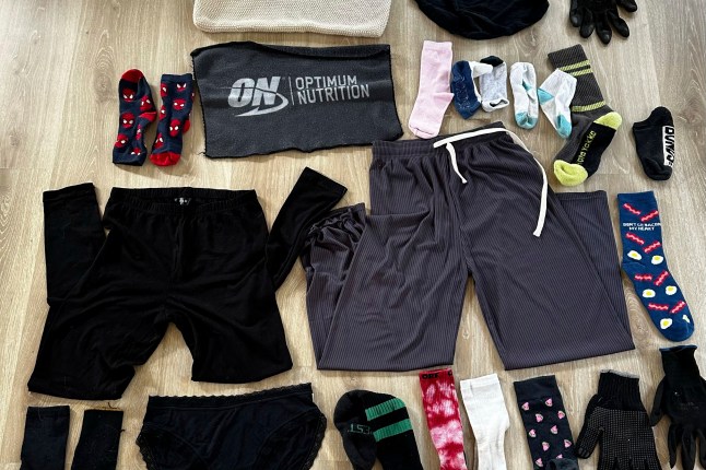 This is just some of the things Leo the laundry-stealing cat has stolen (Picture: Helen North via AP)