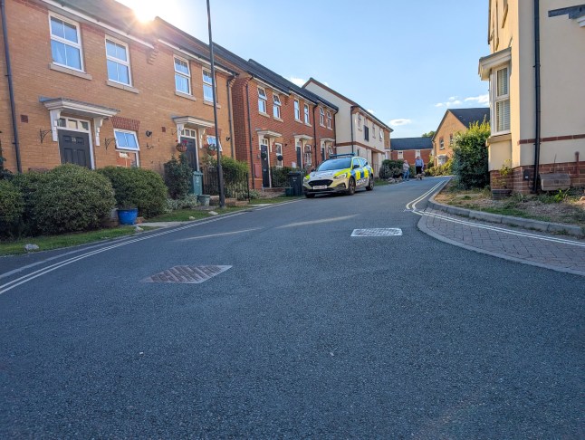Police posted outside the address where a toddler was brought out by paramedics.