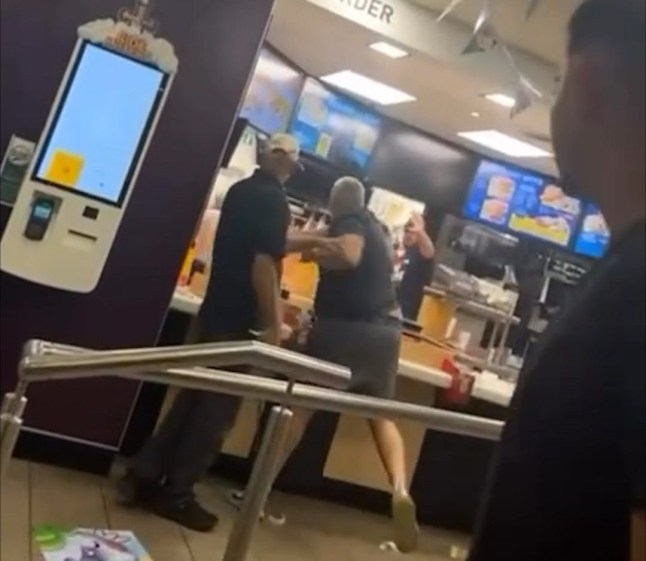 The two McDonald’s workers eventually tugged the customer away after grabbing him by the shirt.