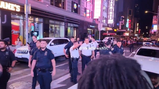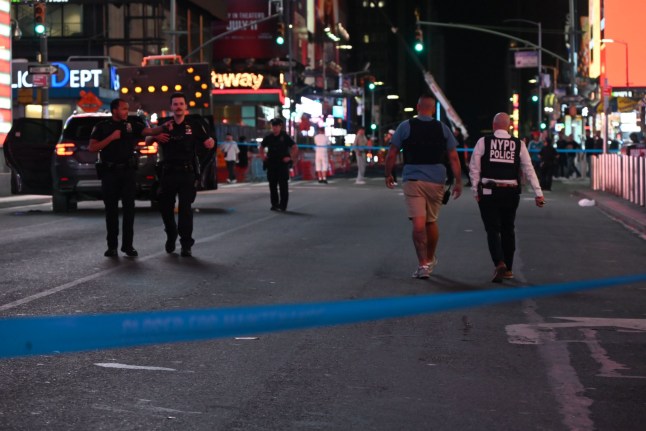 Police at the scene of the shooting in Times Square (Picture: Twitter/ViralNewsNYC)