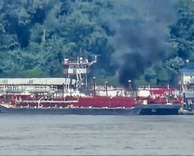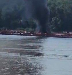 Photos from the scene showed a thick gray plume of smoke rising from the boat.
