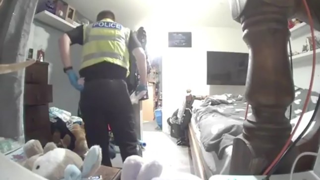 The alleged suspect can be heard shouting ‘trick or treat’ before the sound of broken glass is heard.