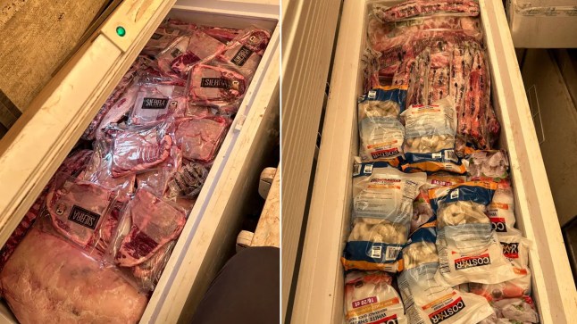 A man has been arrested for allegedly keeping more than $31,000 in frozen meat and fish in freezers at his California home (Pictures: Paradise Police Department)