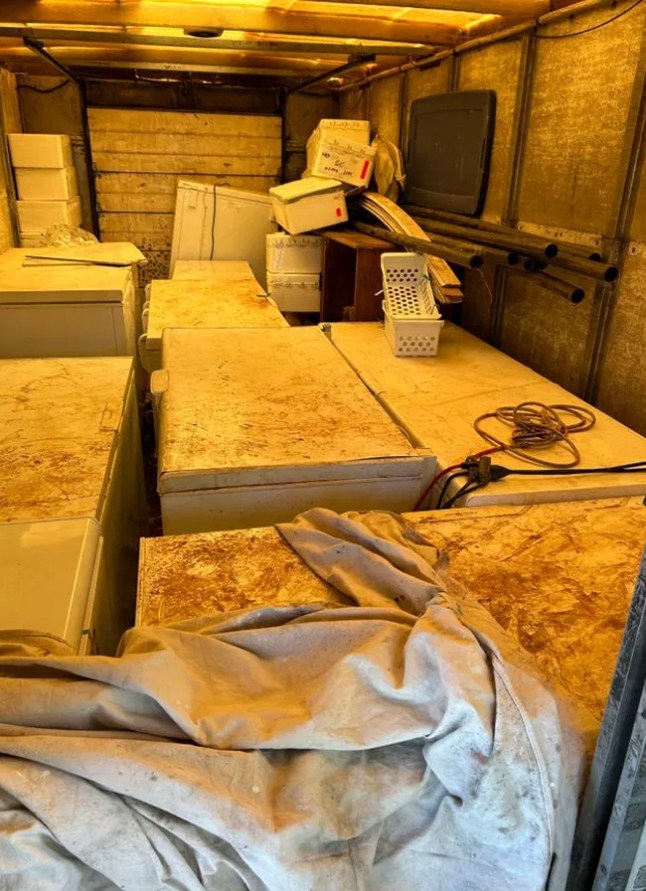 Freezer cases were found stacked in a makeshift room at the man’s home in Paradise,California (Picture: Paradise Police Department)