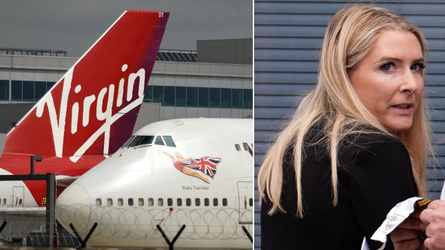 Kathryn Scott outside Uxbridge Magistrates’ Court (right) where she denied a single charge of performing an aviation function when over the alcohol limit on June 12 (Picture: Jordan Pettitt/PA). Pictured left is a Virgin Atlantic Plane (Picture: Oli SCARFF / AFP)