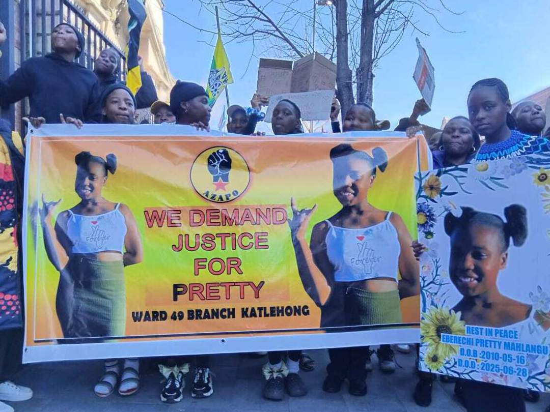 About 50 family members and residents gathered outside the court holding posters,banners and placards demanding justice for Mahlangu,who was driven over and killed.