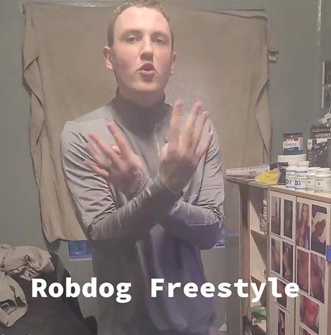 The TikTok clips are posted under ‘HMP hardest rapper Robdog’ and are geographically tagged to ‘HMP Manchester (Strangeways)’.