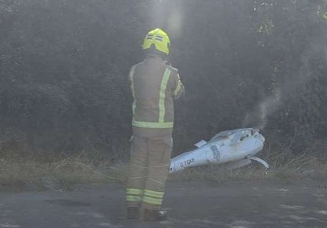 A firefighter was seen near the smoking drone (Picture: UKNIP)