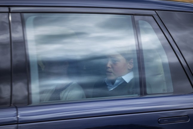 William,the Prince of Wales,was pictured driving to the Aberdeenshire church with his wife Kate by his side and the kids in the back.