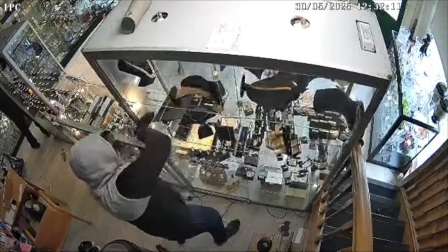 The thieves walked into the store hooded,threatening the store clerk (Picture: Lincolnshire Police)Police said they still had the long-handled axe and possibly other weapons.Both men were arrested for robbery,and three gold chains were recovered from the pocket of Ignats,along with two black bags that were found in the boot.Both men have been jailed for seven years and four months at Lincoln Crown Court after Dombroskis admitted robbery and Ignats admitted theft,assault and robbery.The female employee,in her 20s,was tied up in the shop and told officers she thought she was ‘going to die’.Investigating officer Det Con Katie Munroe said: ‘I cannot begin to comprehend how terrified our victim was,she showed huge courage on that day.’Sgt Lee Giles,operational firearms commander on the day,said: ‘This was a horrendous crime committed against a completely innocent member of our community merely going about her daily work.’Earlier this month,two raiders on a moped tried to smash in the door of a Chelsea pawn shop with a sledgehammer before they were engulfed in smoke from the store’s security system.
