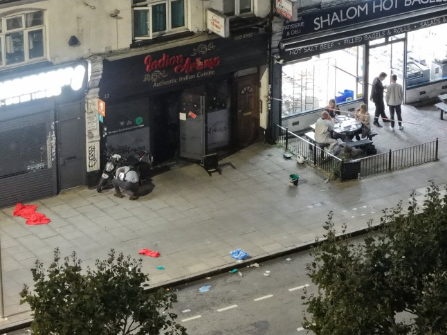 He added: ‘I heard screaming and people saying they had called the police. I came outside (the shop) and there was a man with his skin peeled off.