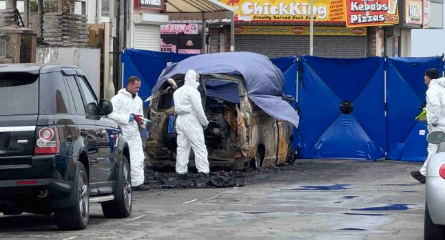 A police statement said: ‘Once the fire was extinguished,emergency personnel discovered a deceased person inside one of the vehicles.