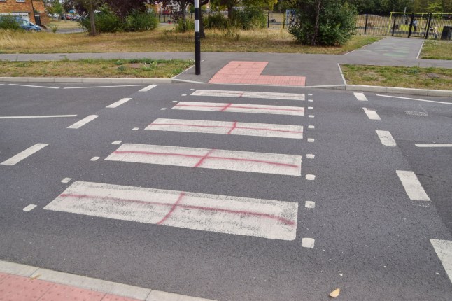 St George’s crosses drawn on a zebra crossing near the hotel (Picture: ZUMA Press Wire/Shutterstock)