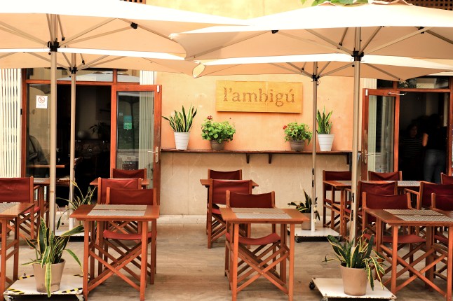 The al-fresco terrace of L’Ambigú is located behind Palma’s gothic Church of Saint Eulalia known for its gargoyles