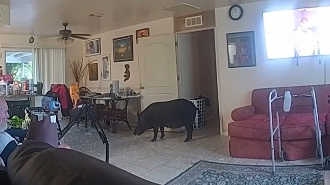 A wild boar stood perfectly calm after breaking into a Florida home – but turned on beast mode when sheriff’s deputies came to evict it.