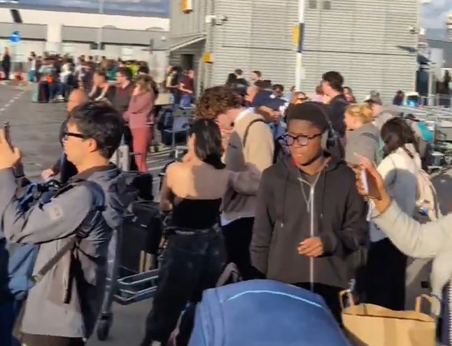 People outside the airport during the evacuation (Picture: Marcin Nowak/LNP)