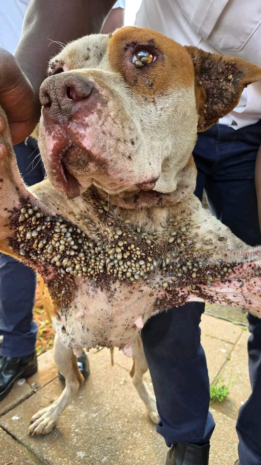 Bella was found in Vosloorus last Friday. She arrived at the SPCA in terrible condition,her body covered in ticks from head to tail and weakened by neglect.